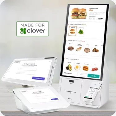 The Samsung Kiosk provides a flawless self-ordering experience that drives revenue, cuts down wait times, and improves the overall journey for your guests. These point of sale systems help increase average ticket sizes through consistent automated upsells. The hardware is fully customizable to your brand and features a simple setup that takes less than 20 minutes.